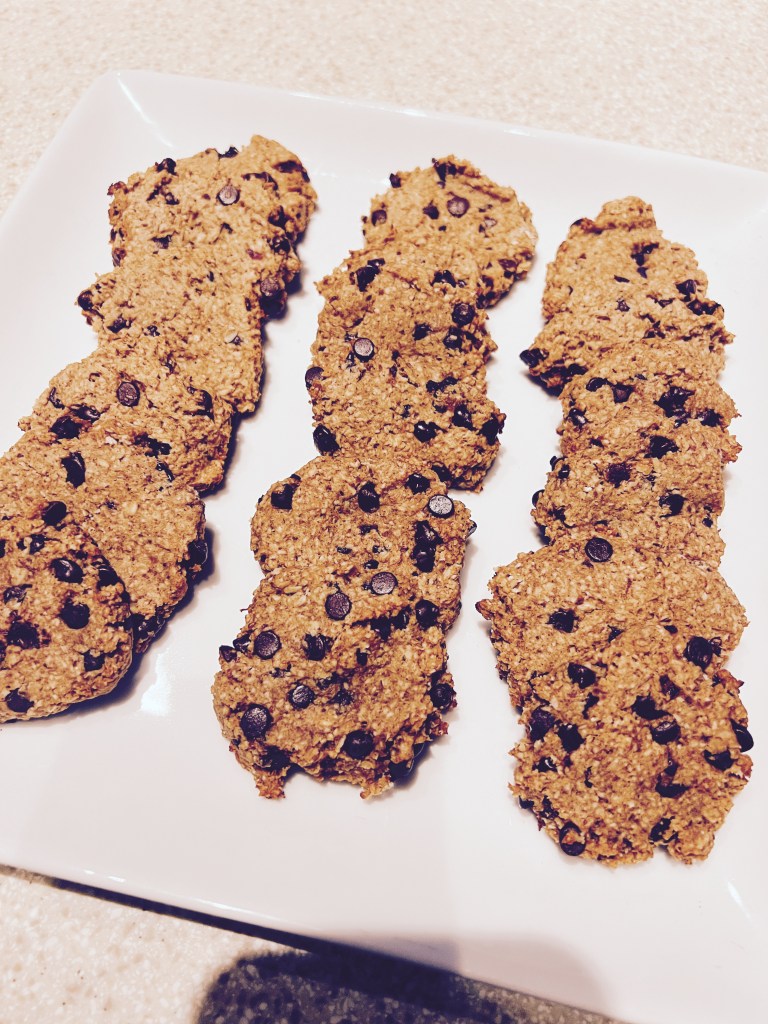 One of my favorite ways to make chocolate chip cookies is with Oatmeal flour. I grind my oats into flour. I prefer a finer texture of my oats. I added 2 scoops of my favorite Vanilla protein powder called Love and Peas. Tired of buying bars from the store, motivated this recipe. It made over two dozen cookies!