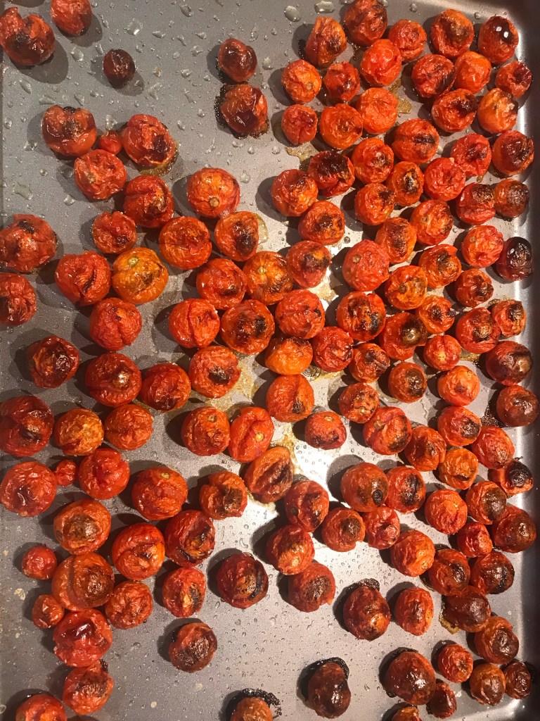 Oh what to do with those excess tomatoes! I actually had so many extra, that I decided to roast them in the oven. Simple and a fun treat!