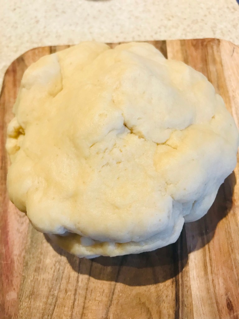 Continue mixing gently with a fork until it feels dense. Then I flour my hands and continue mixing until it combined evenly.